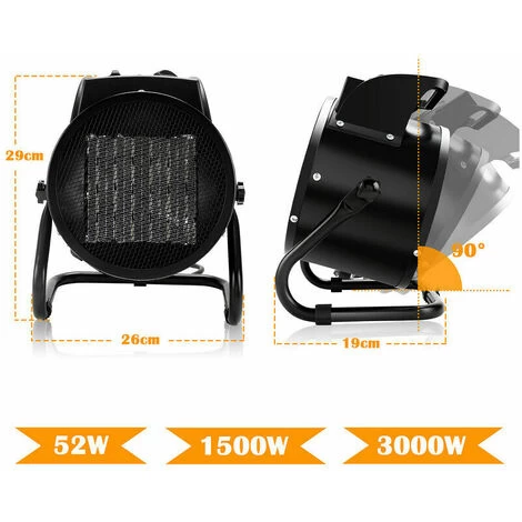 The angle of inclination can be adjusted by 90°. With the carrying handle, the heater can be easily transported, whether in the garage, apartment, office, cellar or when camping – the frame and the carrying handle ensure maximum flexibility.
