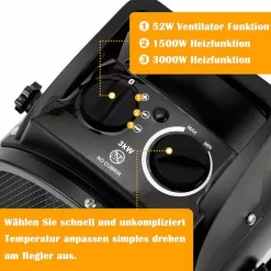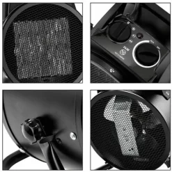 The large surface of the ceramic elements does not cause dust combustion. The electric fan heater is suitable for bathrooms, campsites, cellars, terraces, balconies and rooms up to approx. 20-25 square meters.
