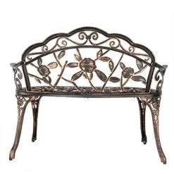 This beautifully designed powder coated chair will add elegance to your front or backyard, which will be a great addition to garden or make a completion for your path. The highlight is the hollowed rose design. This bench features powder-coat steel construction to deliver durability and light weight, and the antique finish adds an attractive look to your patio or deck. The stylish design on the backrest provides a stylish look, and the bench is easy to assemble. Beautifully designed powder coated bench will add elegance to your front or backyard, ideal for along a path, under a tree, among the flowers or in your favorite peaceful spot.
