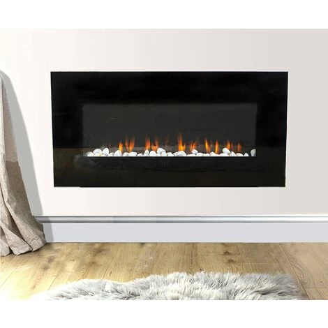 ELECTRIC FIREPLACE – Create a striking modern focal point in your living room with our stunning sleek black fireplace. With stylish, contemporary design from every angle, this flame effect fire will look great and create warmth wherever you choose to display it. With easy to use features and a high performing heat and flame effect, this electric fireplace looks stunning within any style of home. FLAME EFFECT – With its flame effect, the gentle light provided deceptively imitates real flames and instantly spreads a cosy, romantic atmosphere. The sleek black tempered glass finish combined with the pebble bed creates the perfect 21st century fireplace. This fire is also easy to install, simply mount on a wall and enjoy! EYE-CATCHING – Easy to mount and display, with wall bracket included, this fireplace will create an instant focal point in any room, providing heat and a stunning traditional flame effect. The perfect way to create a cosy warm atmosphere for your guests this Winter and all year round! FEATURES – This wall mounted fireplace comes jam packed with fantastic features: Adjustable flame effect, remote control, manual switch, choice of heat, adjustable brightness. Warming heat with easy adjustment and the flame effect that can be used independently of the heat. SPECIFICATIONS – Wall mounted fire with pebble flame effect. Product size: H50 x L100 x W13cm. Flat black tempered glass effect front panel. Remote control. Flame effect can be used independently of heat. Manual touch switch on fire. Fan heater with choice of 1000/2000W. Adjustable flame brightness. Safety thermal cut off device