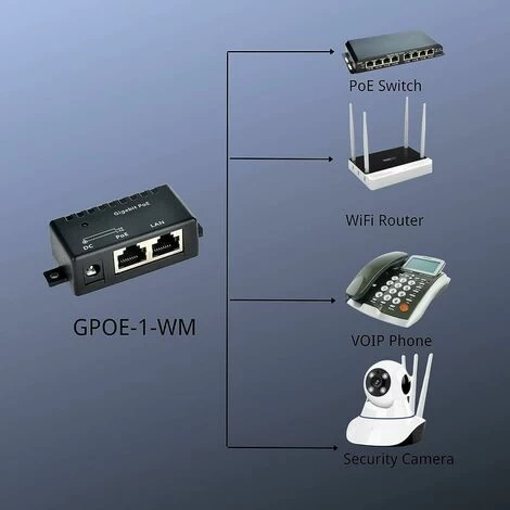 【Free Power Combination】PoE World passive PoE injector can be used with any PoE device, GPOE-1-WM can combine power with data for 10/100/1000 networks. Compatible with power supply up to 56 volts, please note this injector is NOT power supply included.