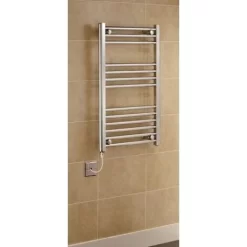 BEAUTIFULY DESIGNED HIGH QUALITY FINISH. HEAT AND THINGS Electric Chrome towel rails are manufactured from highly polished chrome plated steel to give a shining beautifully smooth finish that look amazing when fitted in your bathroom. Its elegant shape with round tubes is simple yet modern and will enhance the look of your bathroom with a high quality `finish and attention to detail that’s second to none. Easy to Install they offer a beautiful finish to any bathroom and using the flexibility of electric heating means you can have heat any time at the flick of a switch.