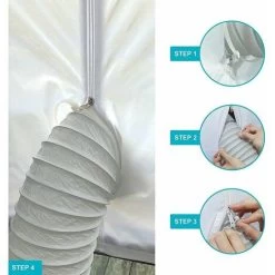 - EASY INSTALLATION – WITHOUT DRILLING. Simply apply the tape to both the window frame and the window. Attach the caulk to the tape. Then unzip and place your air conditioning hose outside of the window. Finally, zip up the tube and tighten. It’s that simple.