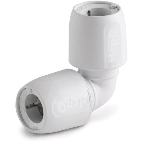 Hep2O Pb 15mm Elbow 90° (White) – Push-Fit Hep2O includes unique features that enable quick and easy installation with a secure fitting. It is the only push-fit plumbing system with joint recognition, secure demounting and a 50 year guarantee. A secure fit every time thanks to Wavin’s In4Sure security feature. Once the connection is in place, twist the pipe or fitting and feel the “rumble”, signaling a perfect fit. Fittings can be easily adjusted with the HepKey demounting system. Simply clip the HepKey over the fitting to depress the collar and release the fitting. This system prevents tampering or accidental demounting and ensures your installation is totally secure.