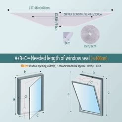 Type de fenêtre à pression – Le joint de fenêtre s’adaptera à tout le cadre tant que la mesure de tous les côtés (A + B + C) est inférieure à 157,5 ‘