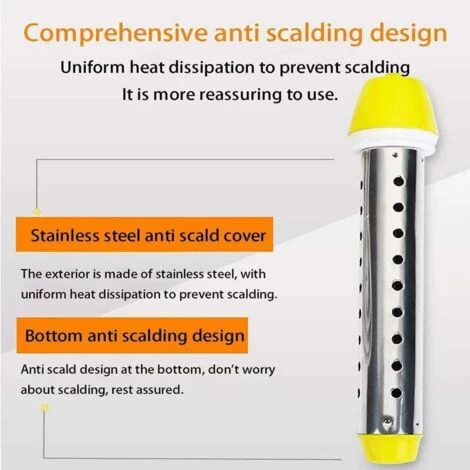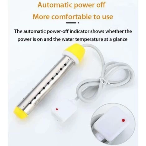 [High Power Water Heater] With 2500W high power, the electric water heater can quickly heat water in minutes and won’t consume too much electricity. The portable and lightweight design makes it perfect for travel and road trips.[Warning Tips] 1.Make sure the heater is completely submerged in water in working condition. 2. Do not use it for more than 3 hours continuously! 3. Please do not plug two heaters into the same outlet to avoid fire hazard. 4.Please remove the heater before touching water![Easy to use] Immerse the heater completely in water, then connect the power plug to the outlet, check the power light to make sure the immersion heater is turned on. It will continuously heat water to boiling.