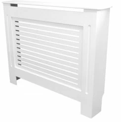 Now upgraded with extra height, this ready painted white Jack Stonehouse radiator cover is perfect for freshening up your room and for placing your favourite photographs or ornaments. This attractive, modern design has chamfered edges and a front grill panel with horizontal slots. For added detail, the front facing uprights have a smooth, vertical rounded groove crafted into them.