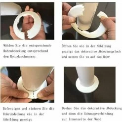 STYLISH DECORATION:You can install the plastic pipe escutcheons around existing radiators or heating pipes. s cover ugly wall holes left by pipes that pass through walls or floors. This white tube cover is easy to install and can be used for air conditioner reserved hole, pipe wall hole, exhaust wall hole, etc.