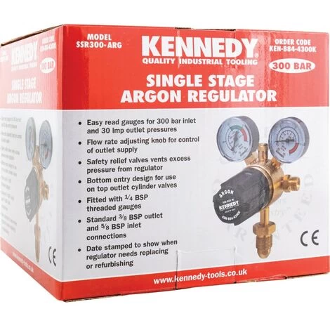 Kennedy:Â Regulator 300 Bar – Single Stage 2 Gauge – Argon 0-35LPM