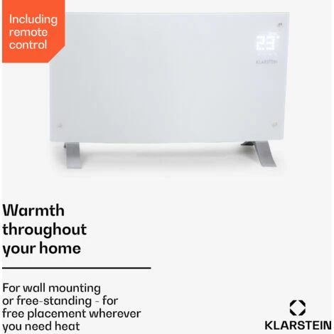 BRING WARMTH AND ELEGANCE INTO YOUR HOME: Our indoor electric heaters create a warm atmosphere in your home. The Klarstein 2000W low energy convector heater ensures an even distribution of heated air in any room without emitting CO2 or excessive noise.