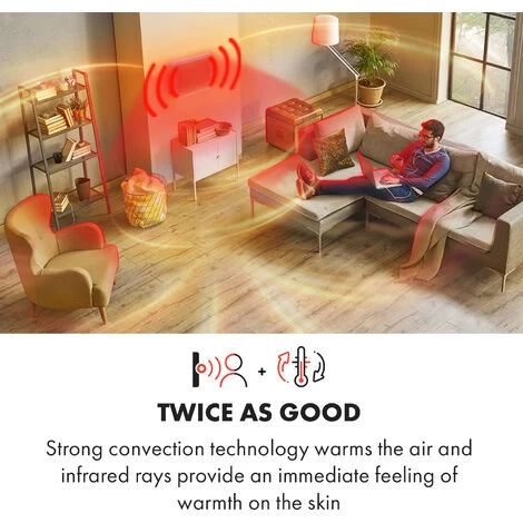 Twice as good: strong convection technology warms the air and infrared rays create an immediate feeling of warmth on the skin