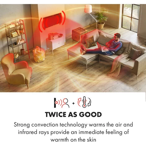 Twice as good: strong convection technology warms the air and infrared rays create an immediate feeling of warmth on the skin