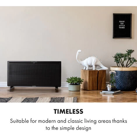 Comfortable warmth: theย Klarsteinย Hot Spot Slimcurve Double Waveย heaterย works with a combination of convection and infrared technology. While the heater warms the air in the room with a solid 2000 watts, the infrared heating element ensures a pleasantly warm feeling on the skin.