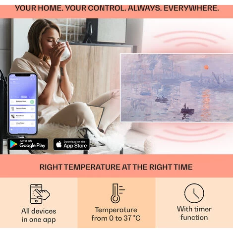 SMART APP CONTROLS WHEREVER YOU ARE: Our app lets you set the desired temperature from your phone wherever you are via WiFI. You can even program one or more infrared heaters to turn on at certain times to return to a warm home or to save energy.