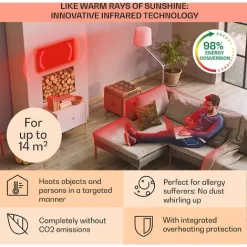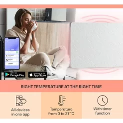 CLEAN, QUIET, NATURAL: With a gentle heat that warms up instantly, this infrared panel heater is incredibly clean and does not emit CO2 nor create obtrusive noise. In addition to being quiet, it’s odour-free, making it ideal for those with allergies.