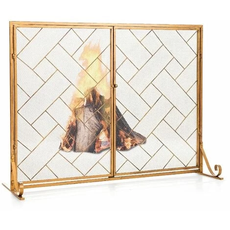 Made of powder coated metal frame and excellent welding, this fireplace screen ensures great stability, rust resistance and high temperature resistance for long-lasting use. The wide base feet with elegant curved shape bring extra stability and beauty. Measuring 85cm in height and 113cm in width, this fireplace screen is suitable for most home fireplaces or stoves. The large mesh screen can block popping embers and fire sparks to keep your kids and pets safe. Designed with 2 hinged doors and convenient knobs, it is easy for you to add firewood and adjust the flame without moving the screen. Besides, the magnetic door design ensures added security.