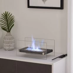 *High-quality table fireplace with heat-resistant glass cylinder made of