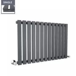 The Lulea flat panel radiator, in anthracite, is perfect for any style bathroom. The Lulea 13-piece single sided radiator maintains a contemporary style, fitting in with any modern bathroom. The horizontal alignment also adds to its modernity and minimalistic style. As the radiator is single panel, it offers high heat output for a smaller bathroom. The Lulea flat panel radiator also comes with a 10 year ‘Fit & Forget’ guarantee.
