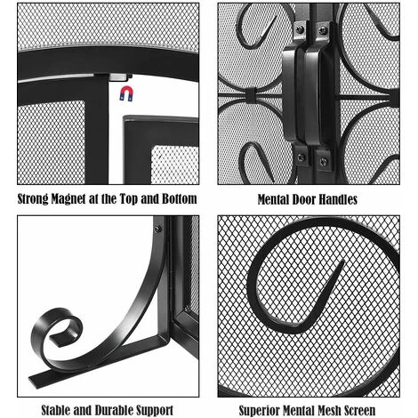 Bottom magnets keep fireplace screen hinged doors closed safely.