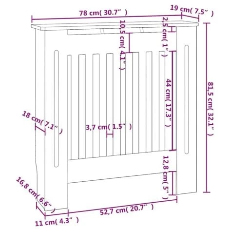 This radiator cover cabinet is made of MDF, sturdy and durable. It features a modern slatted design, making it suitable for any decor. The shelf provides ample space for placing your books, photo frames, ornaments, etc.