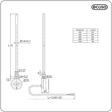 – Includes a 1200W thermostatic Bluetooth heating element