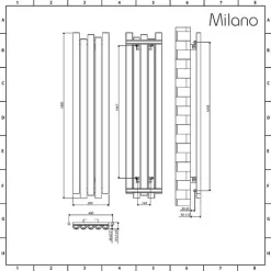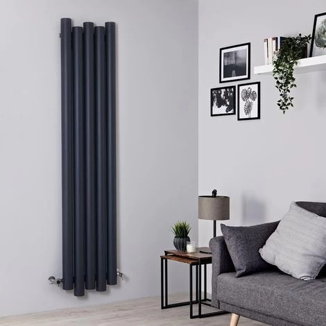 – Modern vertical radiator with five staggered panels