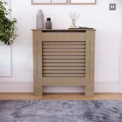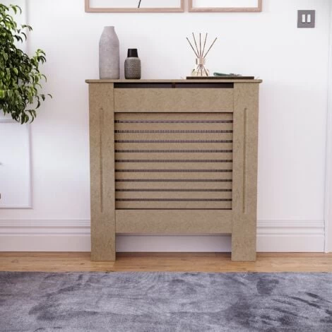 Home Discount offers this stunning new product with a modern stylish design, the Milton Radiator Cover Unfinished. It offers not only visually appealing addition to any room, but also it acts like an extra shelf for some of your accessories, decorative elements, and plants. Featuring horizontal line pattern, it has a perfect combination of design and ventilation construction which means you do not lose any heat and uplift room interior. Furthermore, this cover is unfinished, so you can paint it in any colour you like!