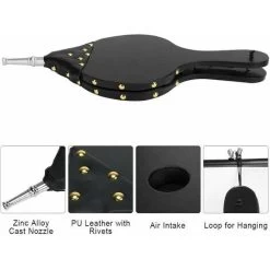 Material: Wood and PU leather. This fire bellows is hard-wearing and sturdy enough to effectively start your fire and stay lit without cracking or warping. Heat-resistant zinc alloy die-cast nozzle does not melt at high temperatures and outperforms metal