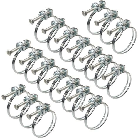 Double wire hose clips to fit most pond corrugated hose. The clips are designed to clasp the hose between the hose ribs. Each clips has a screw attachment making it easier to adjust to fit snugly on the hose Clip Size in mm : 24 – 28 To fit hose with internal size in mm (in) : 25 (1) Wire Diameter in mm : 1.8 Screw Size in mm : 5×35
