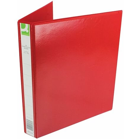 Made from strong welded PVC, this high quality presentation ring binder from Q-Connect will bring a touch of professionalism to your office. Featuring feature full length cover and spine sleeves for adding your own presentation cover and finished in red, these folders have an easy-open 4 D-ring mechanism for adding and removing papers quickly, with a total capacity of 25mm for storing A4 documents.