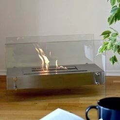 Product features:Bio ethanol fireplace in brushed stainless steel – Material: Stainless steel / glass – L xwxh: 60 x 30 x 35 cm – Weight: 15 kg. | < h4 class=a-spacing-mini>Burner data: 1.5L non-woven ceramic burner – 1.5L fuel tank 7 h – Heating power: 2.2 kW/h. | Security :Safety burner with leak protection, non-woven ceramic burner, certified protective glass TÜV. |