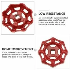 steal. Suitable for straight and angled seated valves. Widely used in mechanical equipment, chemical equipment, industrial equipment, water supply and drainage equipment, etc. It is easier to open and close because the direction of valve movement is perpendicular to the direction of flow, both inward and outward. Made of high quality cast iron, durable and sturdy. Cranks are intended for all applications where general or fine adjustments need to be made using a rotary mechanism. Color: 1 piece Description It is easier to open and close because the direction of movement of the valve is perpendicular to the direction of flow, both inward and outward. Characteristics – Material: cast iron – Colour: red – Dimensions: 6.5X6. 5X2cm/2.55X2. 55X0. 79 inch Package including 1 x handle