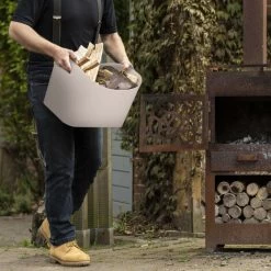 This wood basket is a stylish and practical fireplace accessory for your living room. Carry ready firewood logs or kindling conveniently to the stove or fireplace with the help of the handle. But the firewood basket is not only suitable for transporting a sufficient amount of firewood. The modern firewood bag with imitation leather cover in light grey also serves as decorative storage for the wood. Use the firewood basket universally for magazines, toys and much more.