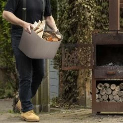 This wood basket is a stylish and practical fireplace accessory for your living room. Carry ready firewood logs or kindling conveniently to the stove or fireplace with the help of the handle. But the firewood basket is not only suitable for transporting a sufficient amount of firewood. The modern firewood bag with imitation leather cover in dark grey also serves as decorative storage for the wood. Use the firewood basket universally for magazines, toys and much more.