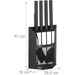 A crackling fireplace warms you up on cold and rainy days, when comfort and cosiness is the thing you need the most. With this fire irons kit, you can successfully kindle your fire and assure the pit always stays clean. You can hang all tools from the rack for neat storage and to always have them in reach. The matt black colour adds a modern and high-quality look. A decorative and handy companion set for your living room.