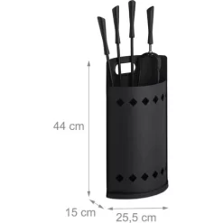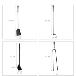 – With ash shovel, broom, poker and fireplace tongs