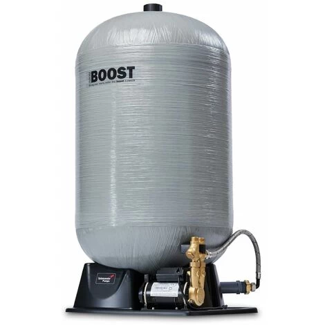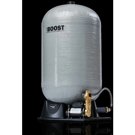 Pumped 180L A pumped accumulator offers an excellent solution when your incoming mains flow is below 12ltr/min and/or the static pressure is below 2.0 bar. This pump will always maintain 12 litres per minute along with the extra flow provided by the tank. The 180L pumped accumulator delivers a maximum flow rate of 18 ltr/min for 9 mins, giving an extra boost to mains water flow. |