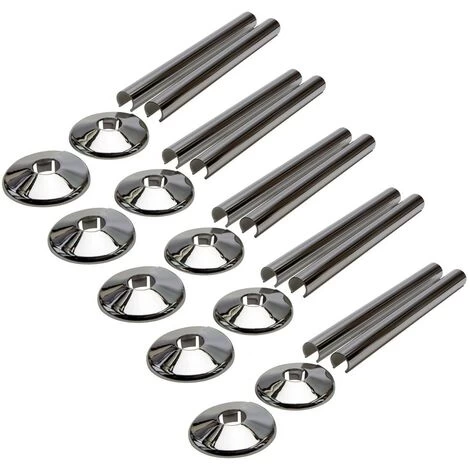 This kit comprises of 10 x 200mm lengths of Snappit 15mm chrome covers and 10 x 18mm chrome pipe collars.