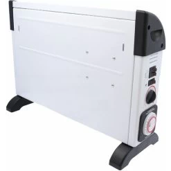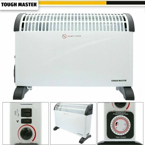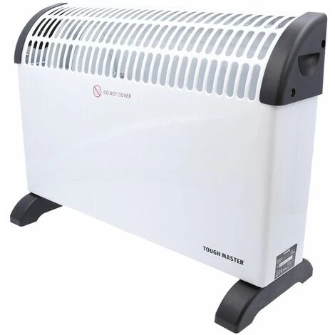 Keep your personal space at the perfect temperature with this powerful, silent convector heater from TOUGH MASTER®. It has 3 power settings: 750W, 1250W and 2000W, a fan setting and an adjustable thermostat. For added peace of mind, our convection heater is equipped with an automatic overheating protection device: If the fan heater gets too hot for any reason, this automatic overheating protection device will turn the heater off. This portable electric heater is also equipped with a thermostat to turn the heater off when it reaches a preset temperature; the thermostat then turns the electric fan heater back on when the temperature dips below the preset temperature, so the convector heater cycles on and off continuously to maintain the desired setting. Thanks to the heater’s 24h timer, you can easily preset this convection heater to switch on or off at any time of the day or night. This fan setting for this heater fan combo enables heat to be distributed throughout the rooms even more effectively and efficiently; you may also use the fan on its own in warmer months to circulate air and provide cooling relief. This quiet heater won’t disturb your sleep, reading time, working and so on. The wide, sturdy support feet for this portable heater provide maximum stability. Thanks to the power indicator light, you can clearly see whether your quiet space heater is on or off, even in darkness.