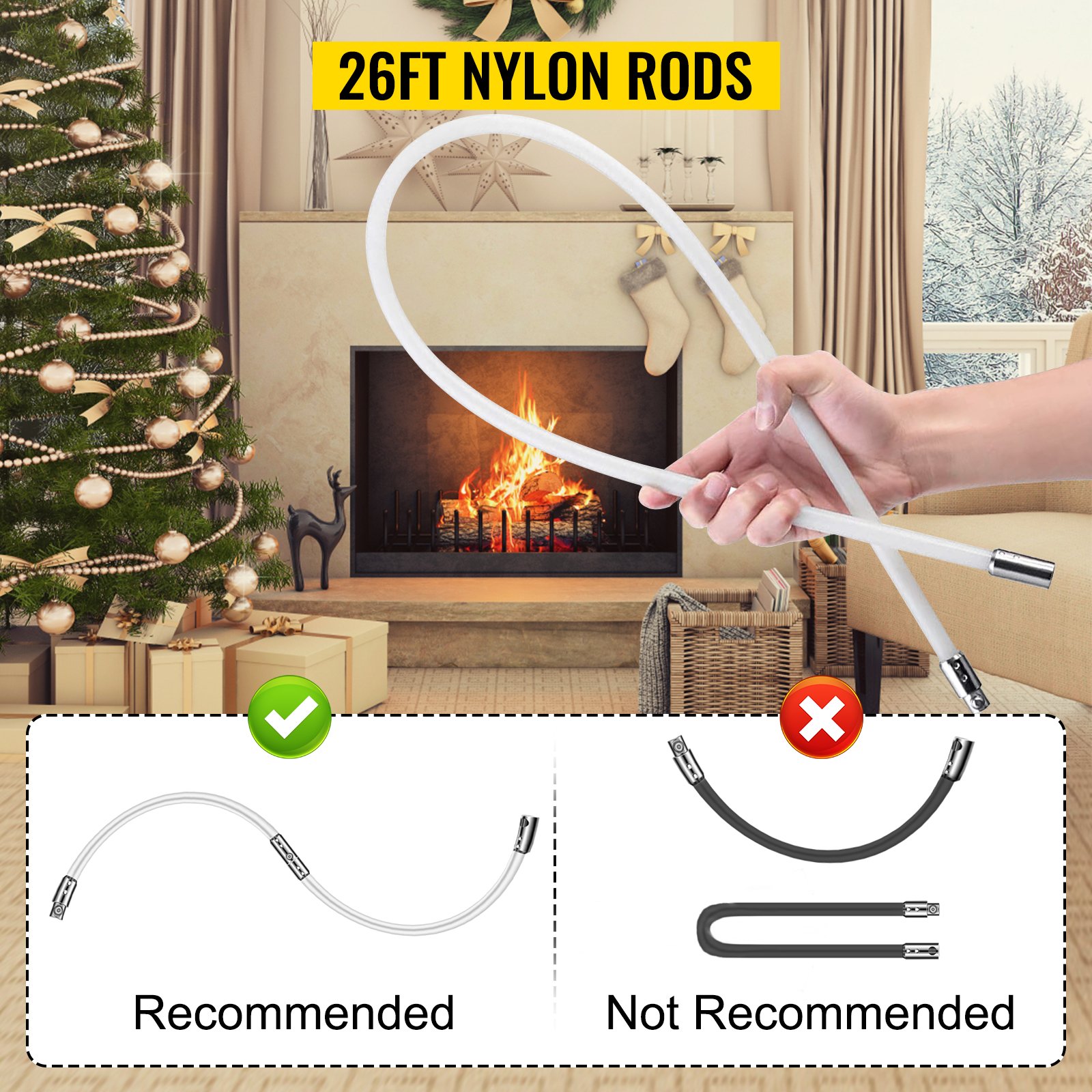 Are you ready to single-handedly clean your stove or chimney? No ladders are needed. With this premium chimney sweep kit, you can reduce fire hazards and consumption of electric power by sweeping away soot from bottom to up effectively. The kit contains 8 rods with a secure locking button that allows you to connect and detach easily. The bristles are also stiff and can use for power sweeping or hand sweeping. Suitable for both metal flues and brick chimneys of different shapes. Don’t just stand there. Get your fire roaring again with VEVOR!