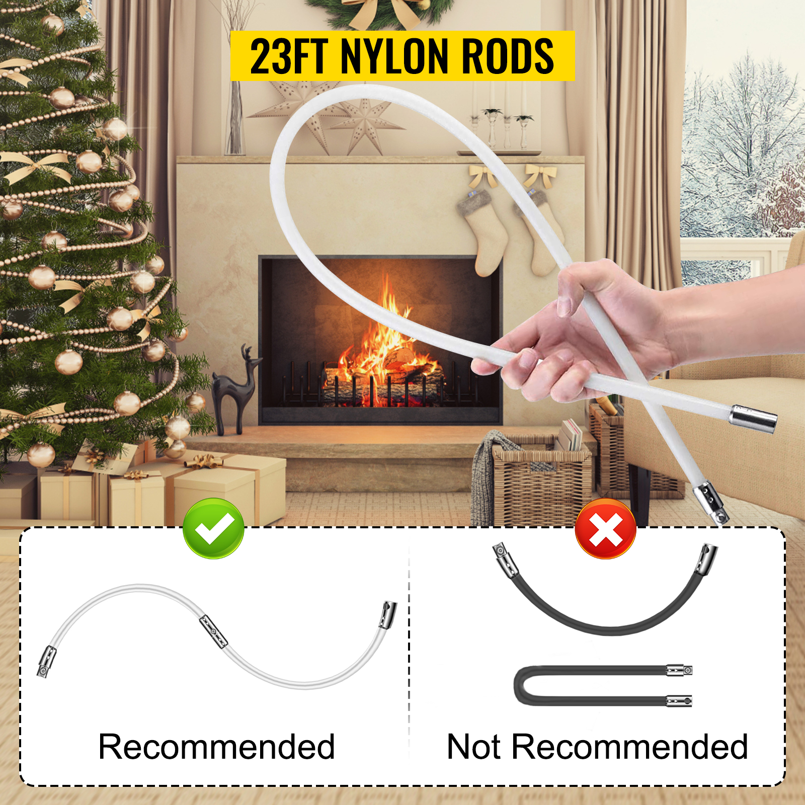 - 【PREMIUM NYLON RODS】- The flexible chimney cleaning kit contains 7 rods, each rod 1 meter in length. Made from nylon, durable, elastic, and chemically resistant. Designed with round fittings will not damage the flue when in motion.