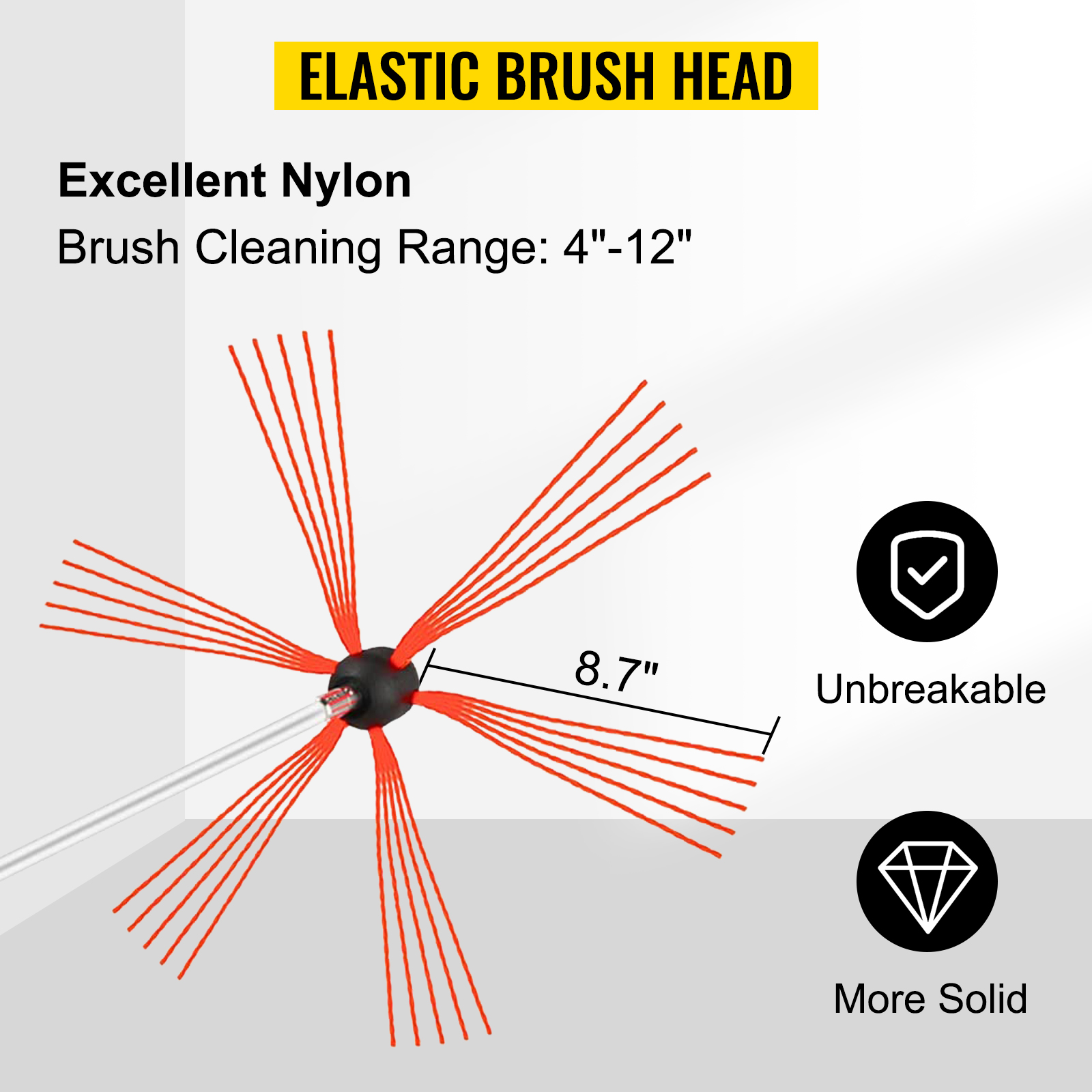 This brush head is made of high-density & reinforced nylon rubber composite material, durable and solid. The bristles feature a unique sharp-edged rectangular shape, makes the sweeping more efficient. It will not damage the flue even in a high-speed revolution.