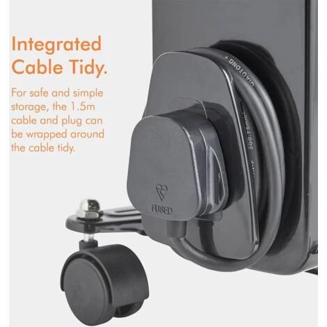 Comes fitted with a 1.5-metre power cable and built-in cable tidy to store the heater away neatly when not in use.