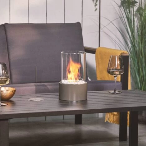 Bring a touch of warmth to your home’s atmosphere with our Round Bioethanol Tabletop Fireplace, finished in a natural grey stone colour.