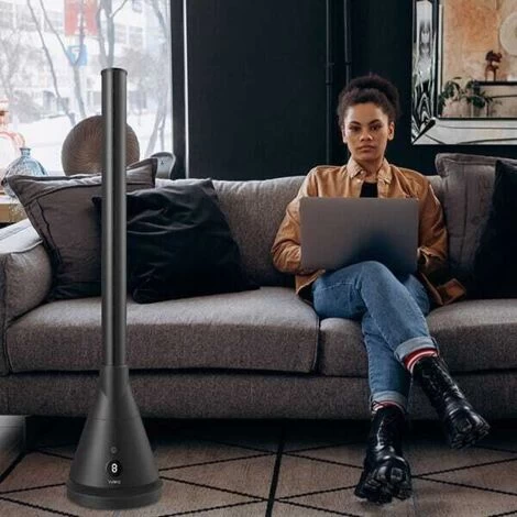 The Vybra Multi 3-in-1 Tower in Black, is a stylish fan heater, cooling fan and air steriliser.