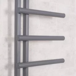 The Kristiansund 988 x 500mm grey designer heated towel rail is expertly crafted to provide the highest heat output alongside maximum functionality and usability. Its design lends itself to complement modern and contemporary suites whilst bringing peace and balance to an otherwise upset layout. Our towel rails are built to last and we’re so confident in the quality that each come with a 10 year ‘Fit and Forget’ guarantee.