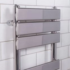 The Juva 650 x 400mm chrome flat panel heated towel rail is a contemporary masterpiece but is as equally suited for modern bathrooms suites alike. The entire Juva range is available in a wide range of sizes and colours to complement the vast number of styles available to us. Perfect for busy family bathrooms – this is a simple yet functional towel rail. Complete with a 10 year ‘Fit and Forget’ guarantee.