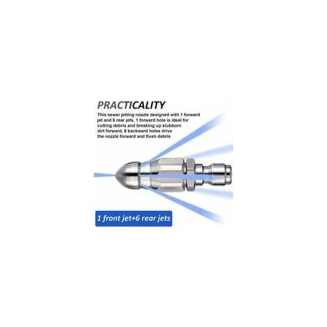 【Break the fines】Since the nozzles of the waterjet nozzle are designed with 1 nozzle and 6 rear nozzles, the 1 hole is perfect for cutting debris and breaking up stubborn dirt to the, and the 6 rear holes lead the nozzles to I’. rinse away debris.